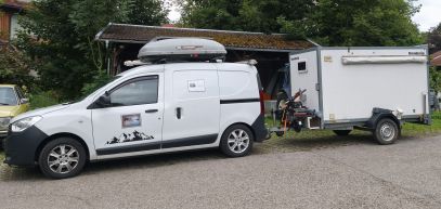Einiges hat sich auch hier geändert, wir fahren nicht nur mit einem selbst ausgebauten Campingmobil durch die Gegend, sondern haben dieses mit einem Anhänger ergänzt. In diesem Koffernahänger habe ich mir einen Schlafplatz, eine Waschgelegenheit, eine Trenntoilette und einen kleinen Schreibtisch eingerichtet. Ebenso wie im PKW eine Batterie FiSe PO4 mit 50 Ah und ein Solarpanel auf dem Dach.